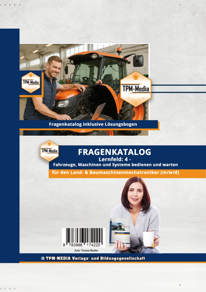 Dieser Fragenkatalog wurde speziell für Auszubildende zum Land- und Baumaschinenmechatroniker (m/w/d) entwickelt, die sich gezielt, praxisnah und prüfungsorientiert auf das Lernfeld 4 – Fahrzeuge, Maschinen und Systeme bedienen und warten vorbereiten möchten.